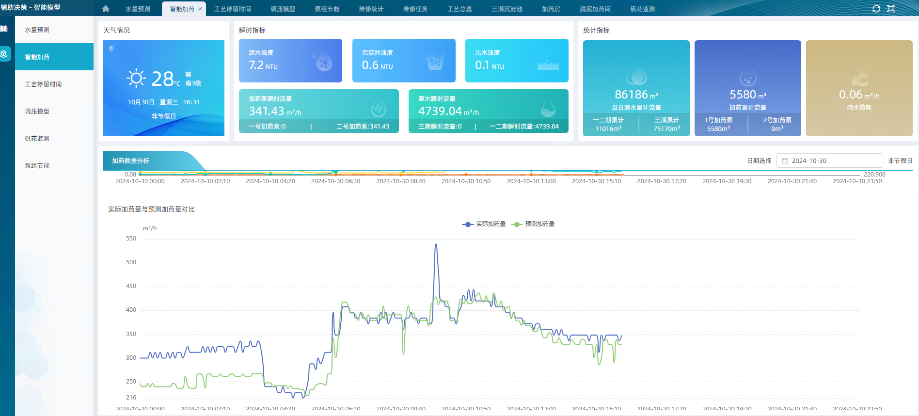 以多維度統(tǒng)計圖表的方式展現(xiàn)績效結果,識別凈水廠運行管理薄弱環(huán)節(jié),為水廠運行管理優(yōu)化提供豐富的數(shù)據(jù)展示企業(yè)門戶和決策支持,使得管理者的決策更加綜合、合理、可行,形成智能化、科學化決策,為全廠可視化、精細化、智慧化運營提供數(shù)據(jù)依據(jù)和強有力的支撐。