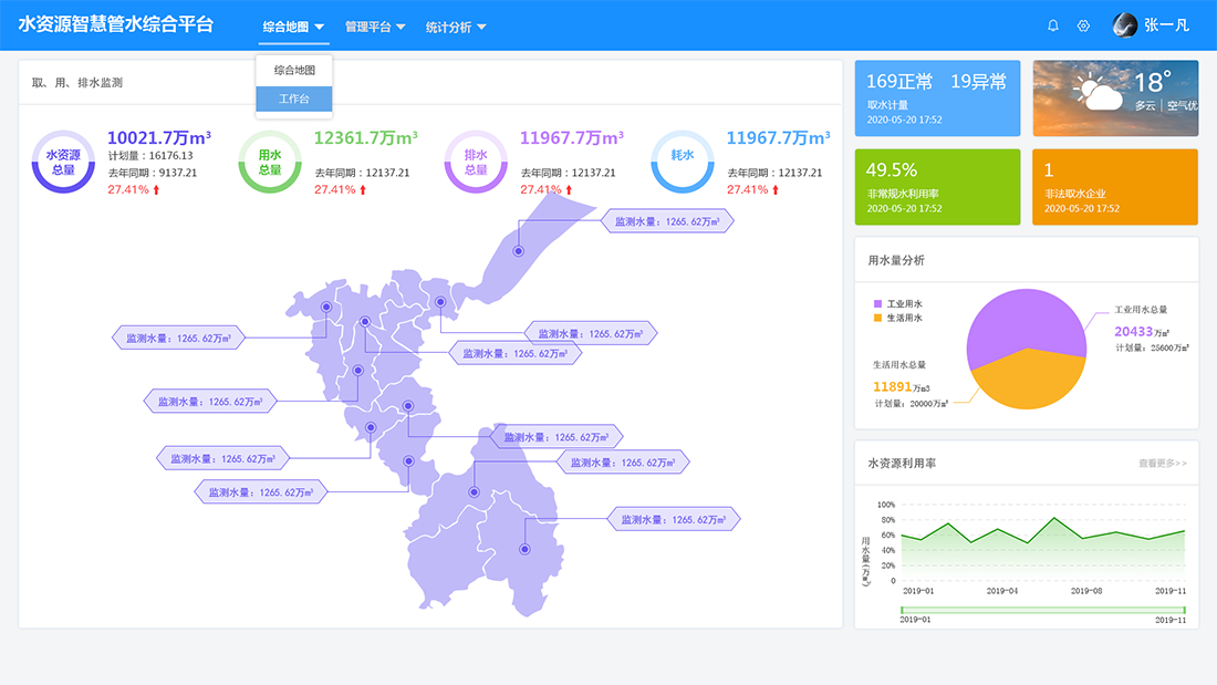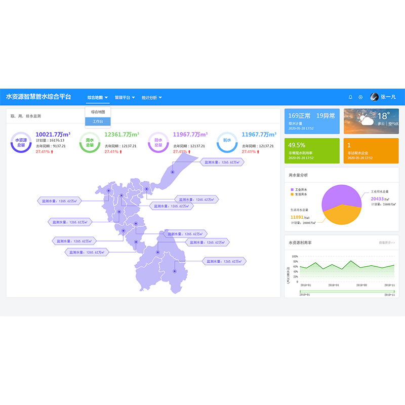 平臺(tái)以數(shù)字化手段變革水資源管理方式,通過多部門協(xié)同、深層細(xì)化管水維度,實(shí)現(xiàn)水資源用水總量控制以及生活、工業(yè)、農(nóng)業(yè)分場(chǎng)景用水控制。全力提升算力,構(gòu)建管網(wǎng)異常監(jiān)測(cè)模型,管網(wǎng)漏損預(yù)警模型、流程重塑模型等研判手段,致力提升水資源節(jié)水及管水效率。